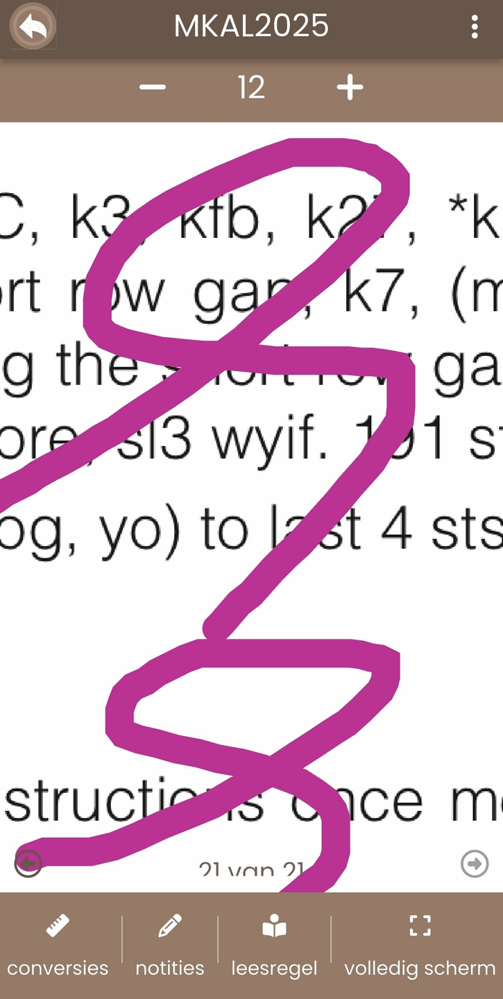 Precies bij houden op welke naalden jij jouw patroon breit, aantekeningen maken, regeltellers invoegen in de kleur van jouw keuze.