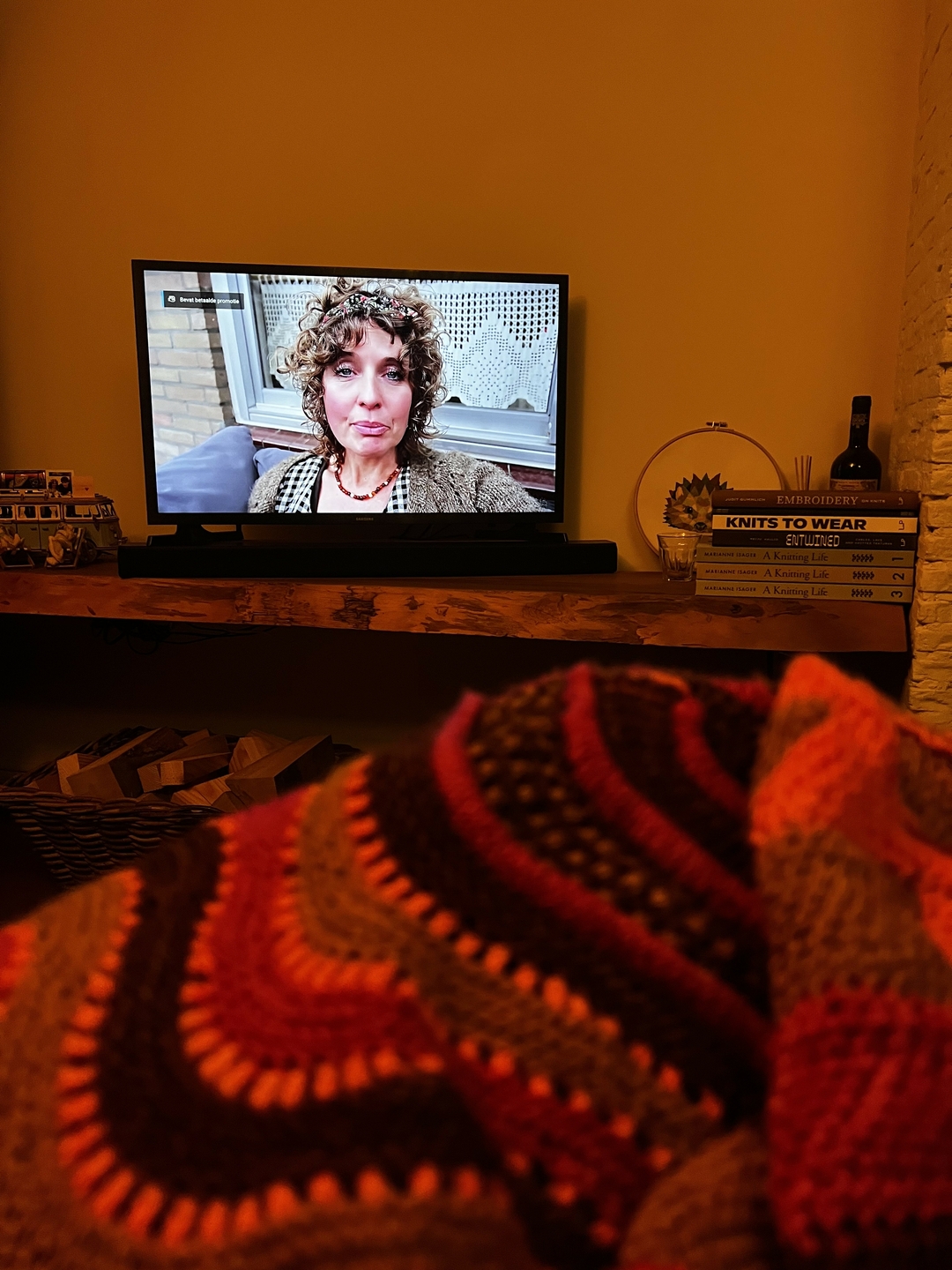 Soms brei ik en kijk ik meteen een podcast, dit keer keek ik naar Sarah en zag ik mijn Makkie shawl opeens voorbij komen. Dat is super leuk!