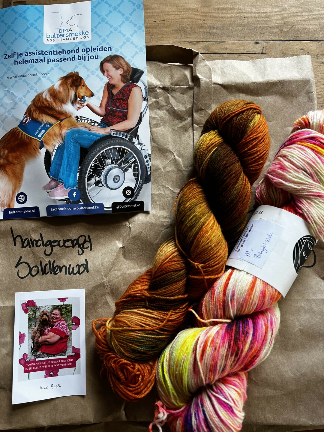 Ze had nog een paar strengen en gaat hem breien in prachtige kleuren.