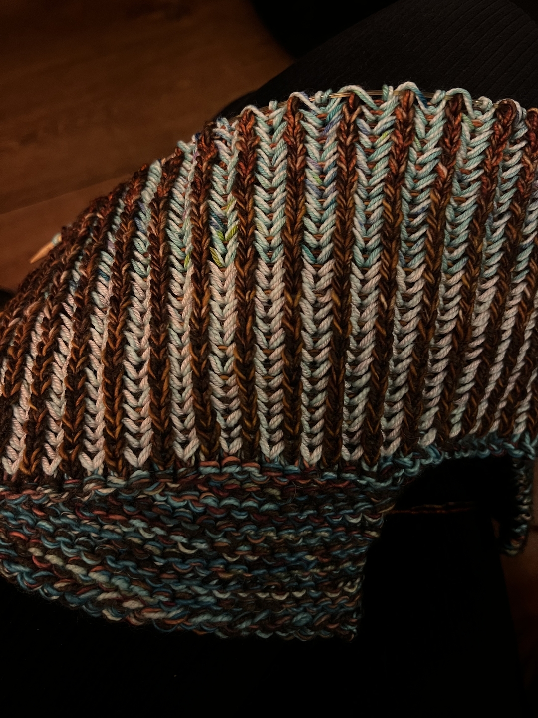 Je ziet het hier niet maar we breiden natuurlijk ook gewoon lekker door.